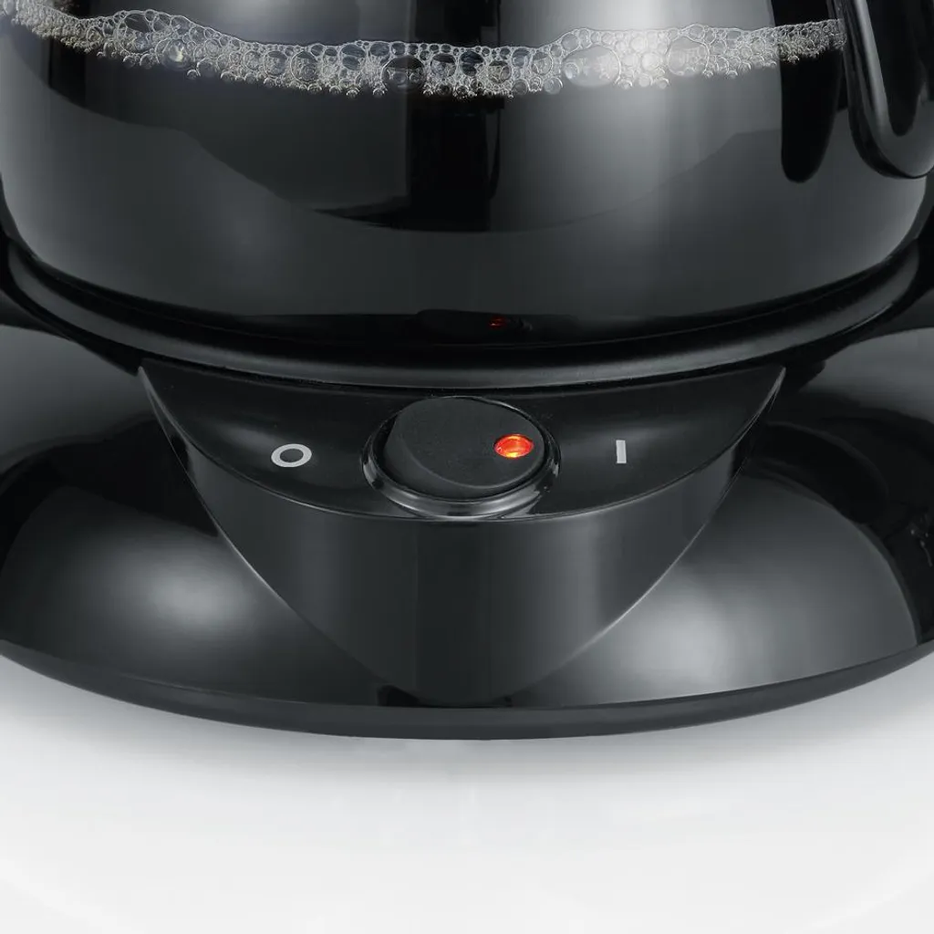 hochwertiges Gehäuse mit Edelstahl-Applikation, ideal für Reisen, Single- und Seniorenhaushalte, automatische Abschaltung, Schwenkfilter, mit praktischem Tropfverschluss, Warmhalteplatte, Frischwasserskala auf Glaskanne, Wasserstandsanzeige
